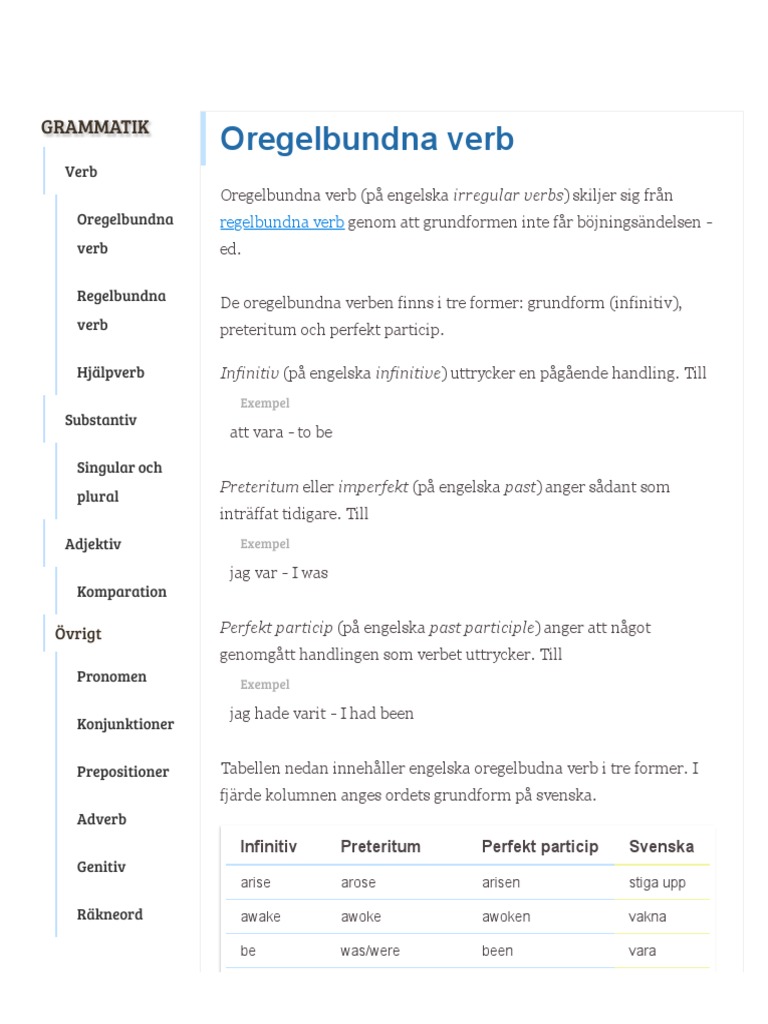 1 Engelska Oregelbundna Verb