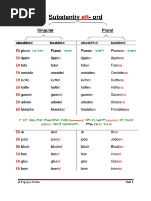 Substantiv Nouns En Eller Ett 70 80 Are En Words