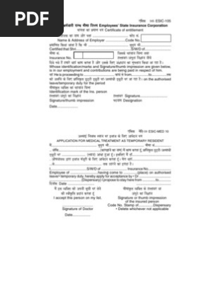 Esic 105 Certificate Of Entitlement Government Politics Free
