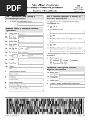 Form G 28 Notice Of Entry Of Appearance As Attorney Or Accredited