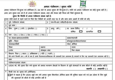 Aadhaar Card Form In Hindi