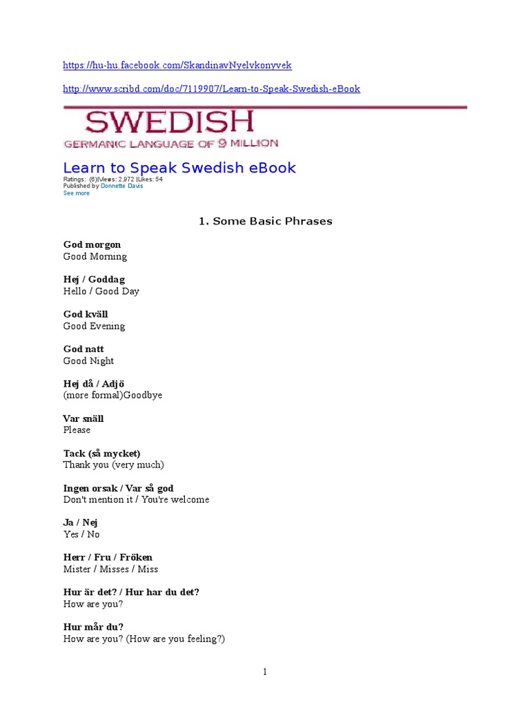 Learn To Speak Swedish Ebook