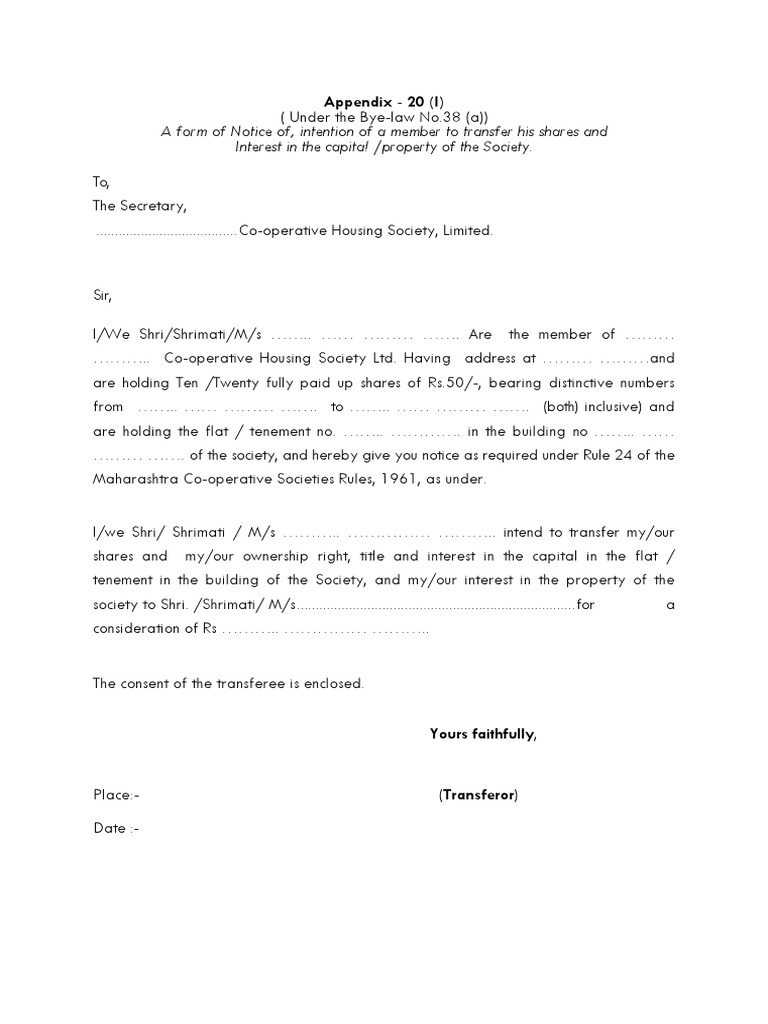 Editable Nomination Form For Cooperative Housing Society Cuitan