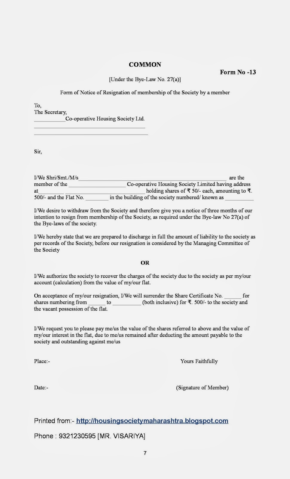 Housing Society Maharashtra Form No 11 29 For Nominal