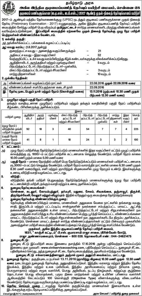 Tamilnadu Government Civil Services Exam Coaching Admission 2019