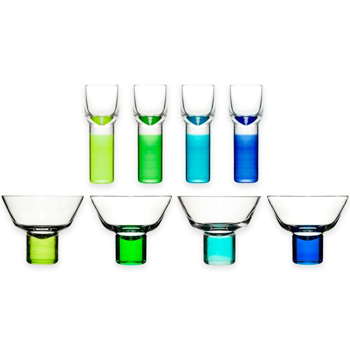 Sagaform Club Martini And Shot Glasses In Blue Green Set Of 8