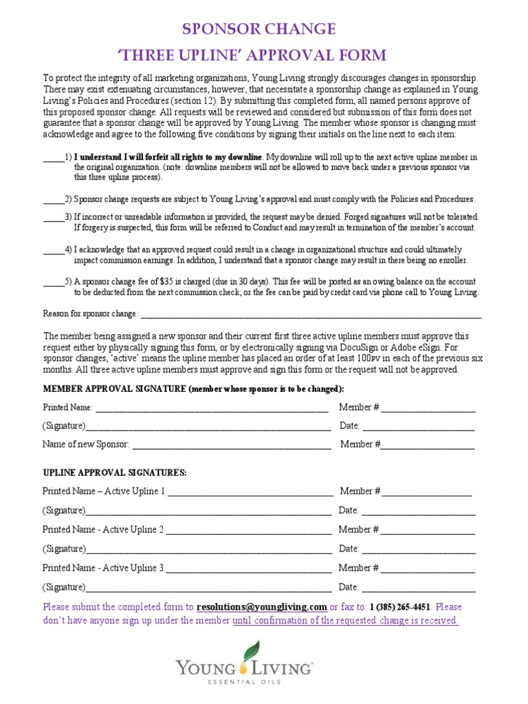 82 Pdf 3 Upline Approval Form Young Living Free Printable Docx 2020